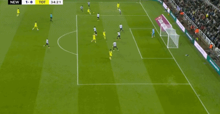 第24分钟,托纳利角球开出,舍尔头球破门,纽卡1-0热刺